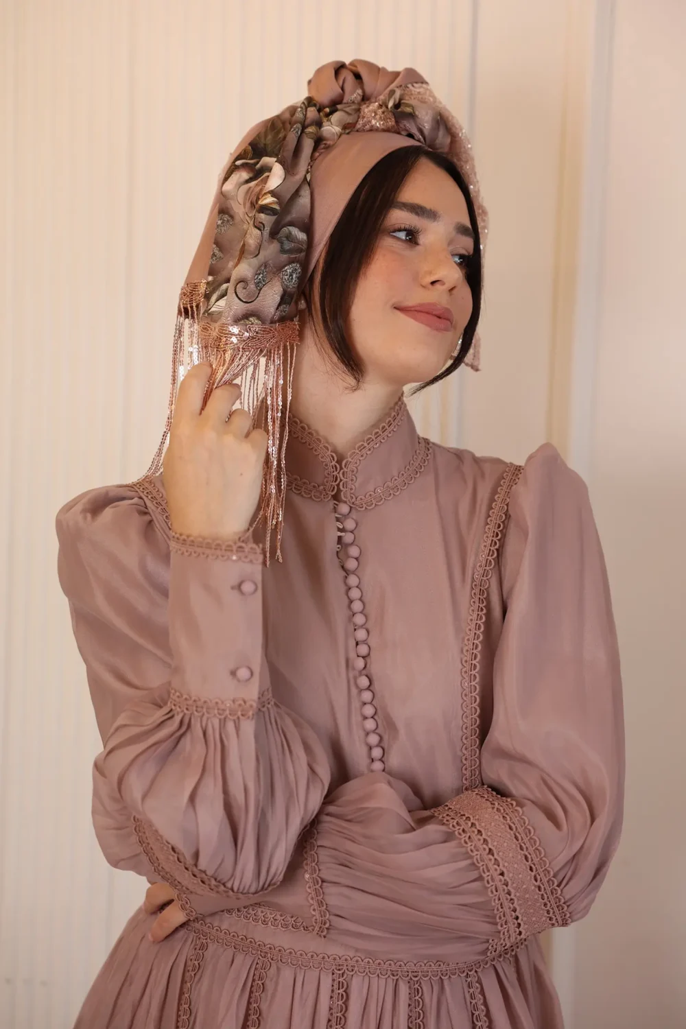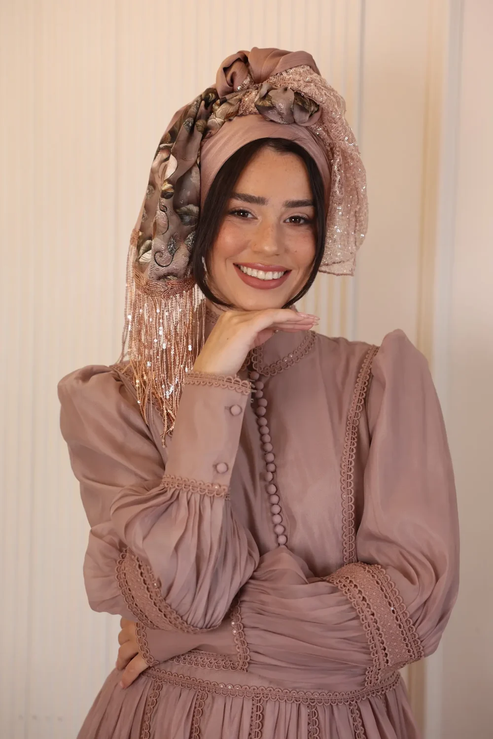 מטפחת פרחונית יוקרתית עם פרנזים זהובים! שלושה בדים משובחים נפגשים ביצירה אמנותית – שיפון בהדפס פרחוני עשיר ומתוחכם שלא נראה כמותו סופר מיוחד, פייטים נוצצים המשקפים אור באלגנטיות ובד חלק יוקרתי עם פרנזים רוז גולד נופלים המוסיפים תנועה מדהימה. העיצוב הבוהמייני האלגנטי מתאים לנשים בעלות אישיות חזקה ועצמאית.
