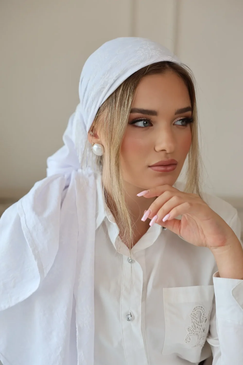 זוהי מטפחת ייחודית שמשדרת טהרות ואלגנטיות מושלמת!